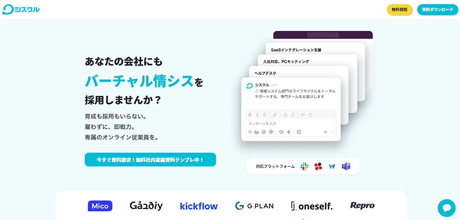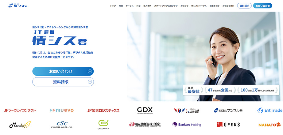 株式会社デジタルハックの「IT顧問 情シス君」は、顧問型のサービスとして継続的なIT支援を行う点が特徴です。困った時にいつでも相談できる安心感と、定期的なITアドバイスや運用改善提案が受けられるのがメリット。 スポット対応ではなく、長期的な視点でIT体制を強化したい企業におすすめです。社内にITノウハウが不足している場合や、担当者育成を並行したい場合に適しています。